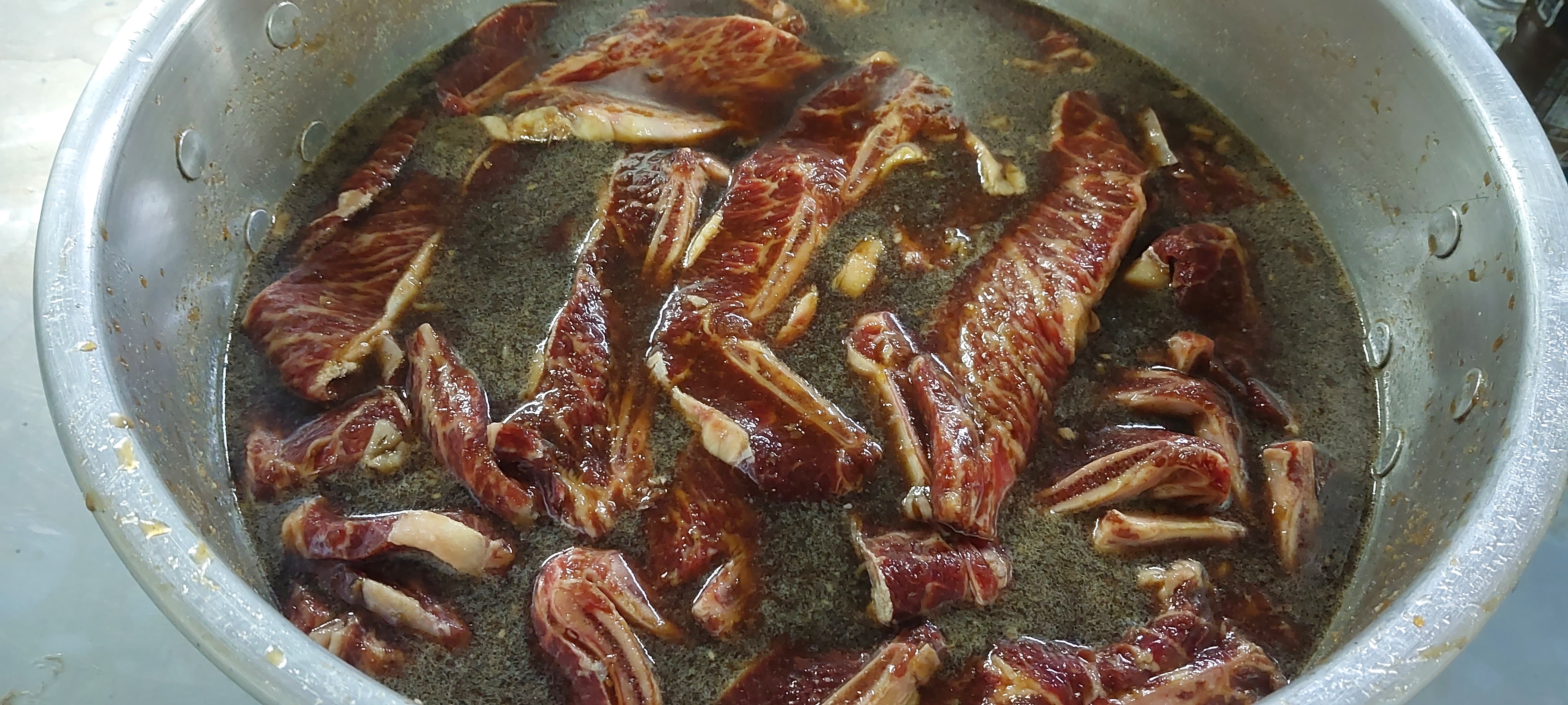 20KG 수입 소갈비를 하루 전날 찬 물에 담근 뒤 핏물을 빼고 부드럽게 한다.