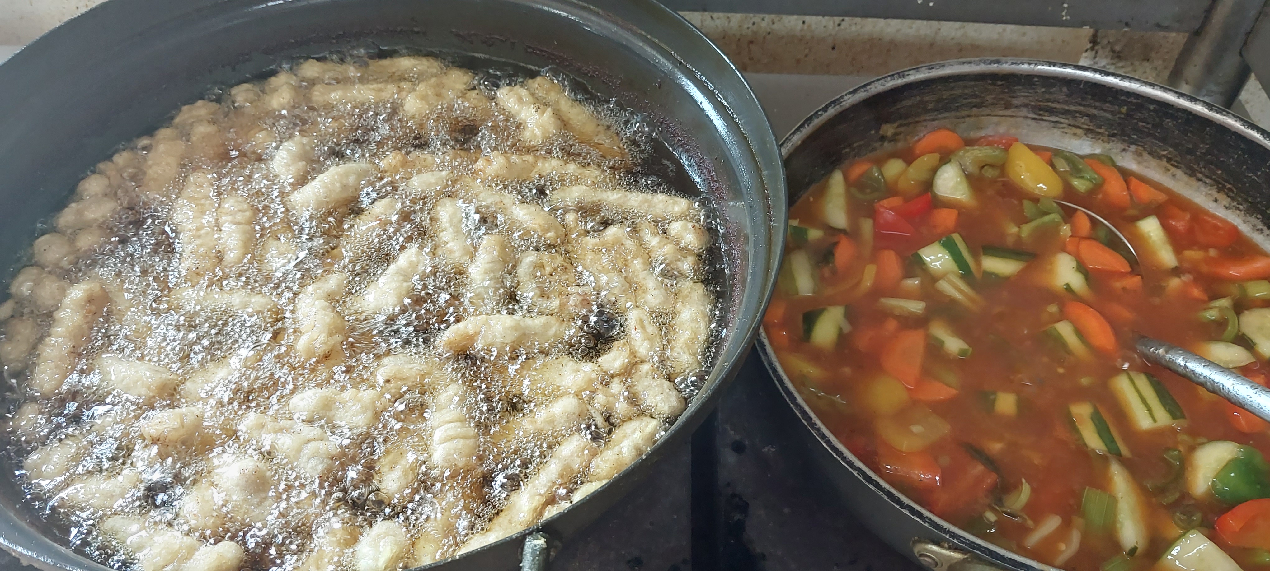 만들어진 탕수육 소스에 식초 설탕을 넣고 새콤달콤한 맛을 낸다. 찍먹이냐 북먹이냐 여기서도 선택을 해야 한다.