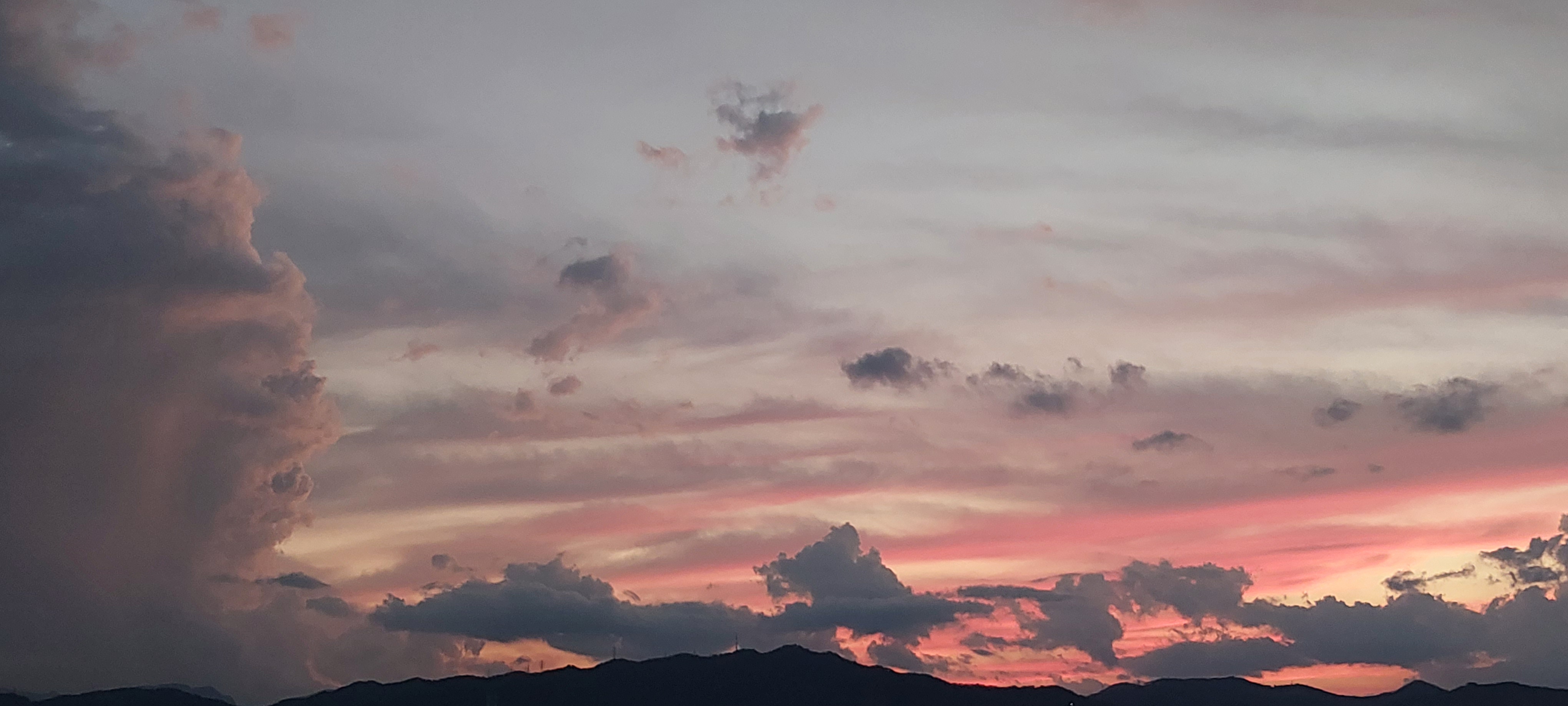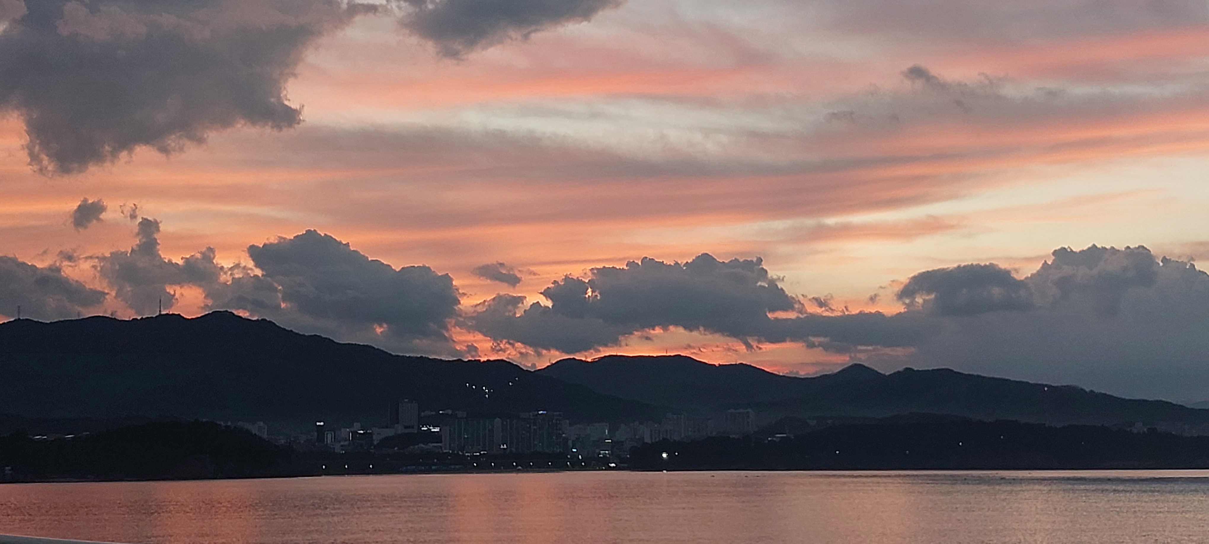 소나기가 지나고 난 뒤 이런 석양을 볼 수 있다. 길어야 10여분 사이에 사라지는 풍경이다.