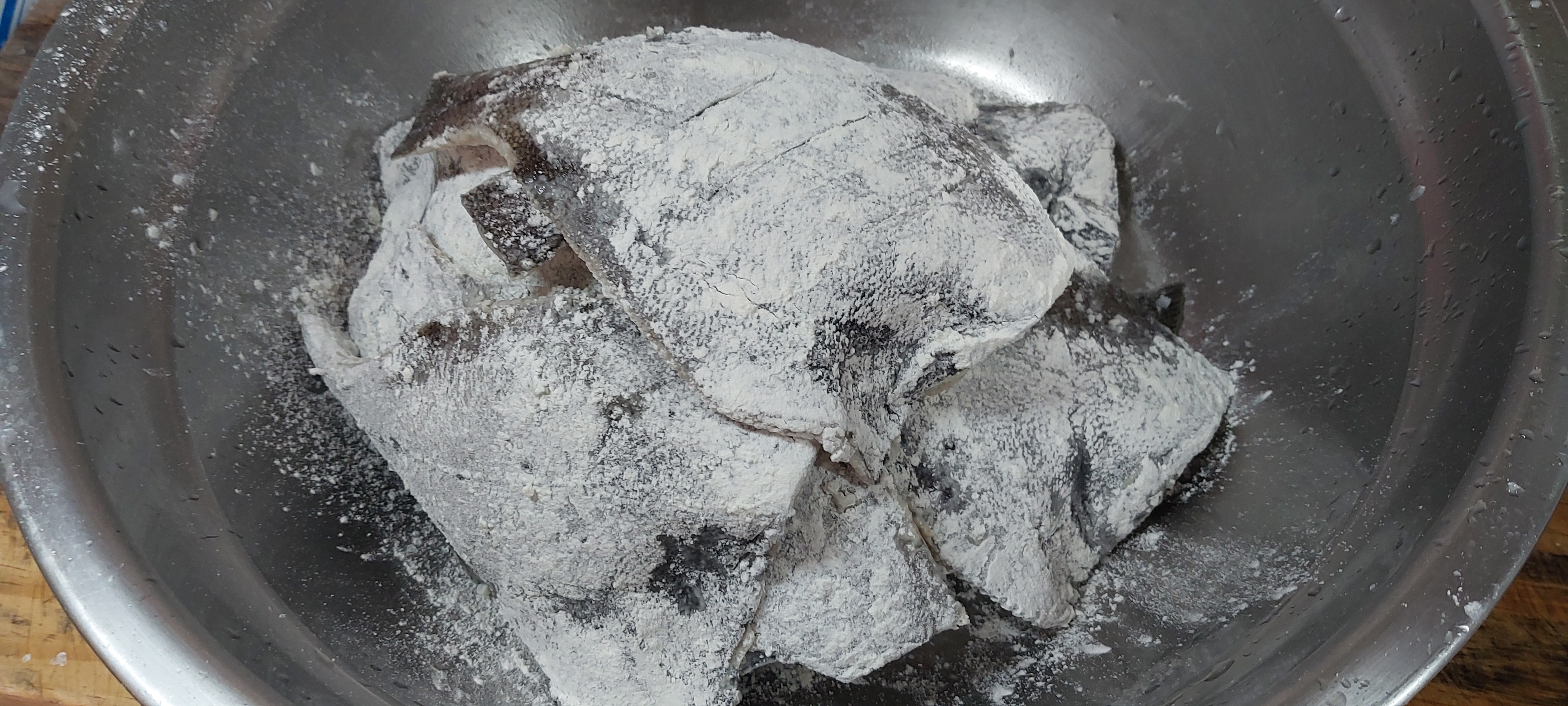 미리 해동을 해놓아야 되는데 점심 끝내놓고 꺼내놓으니 시간이 촉박했다. 비늘 벗기고 소금치고