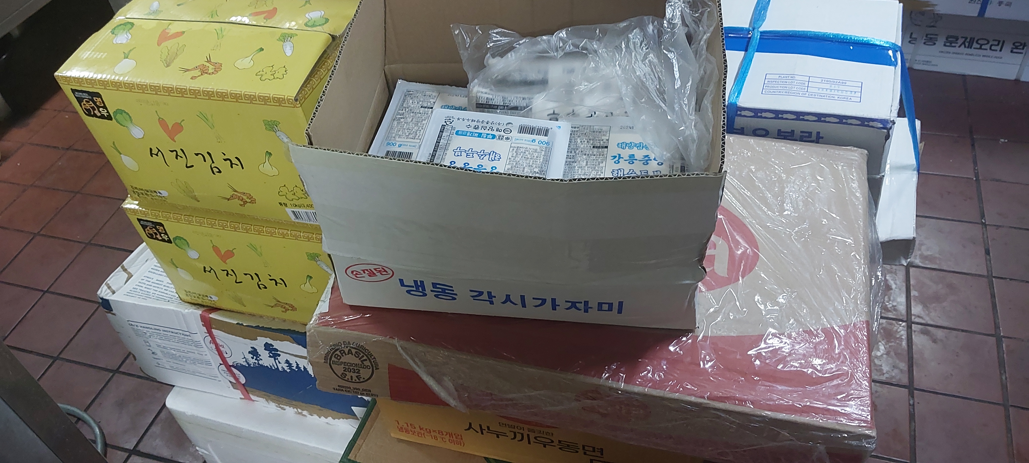 동호수산에서 주문한 부식을 정리하고 있다.