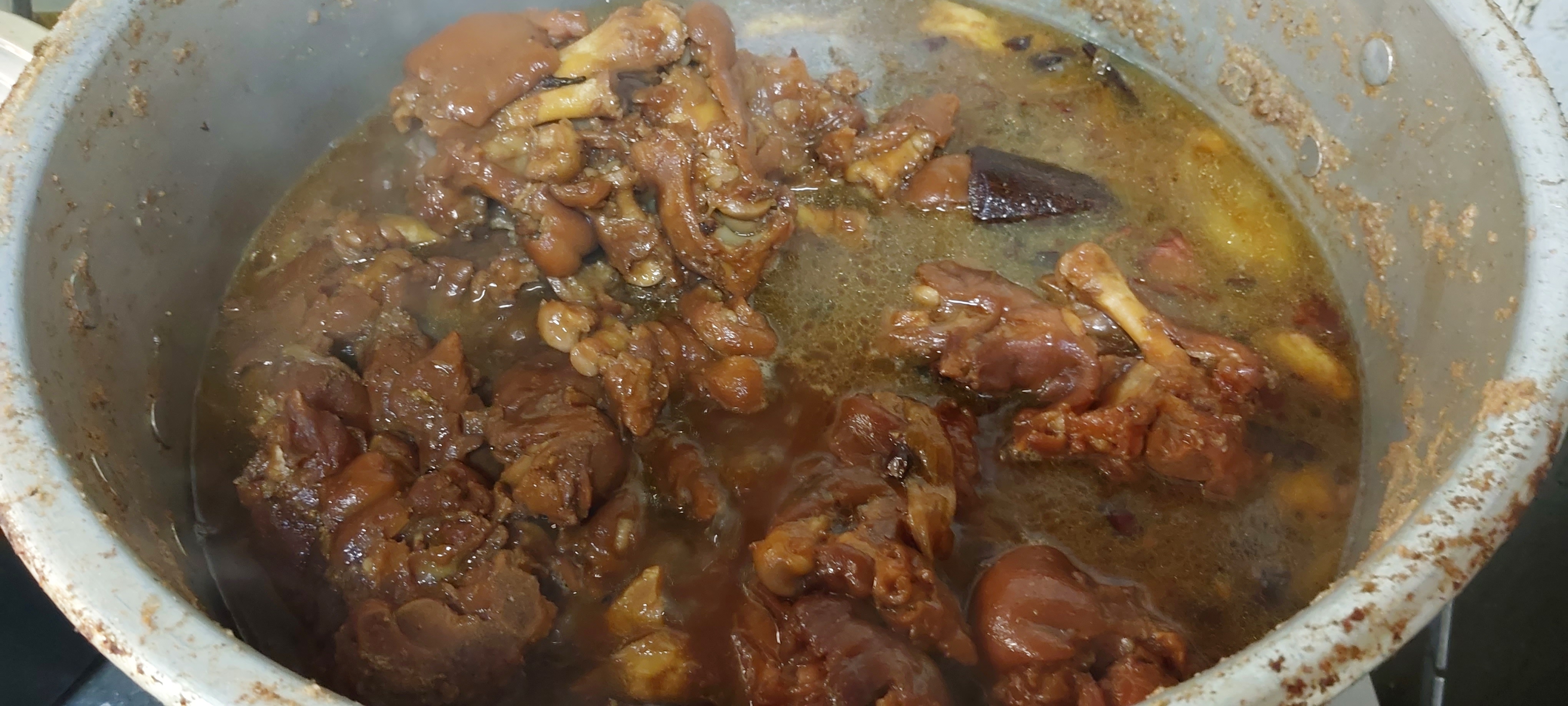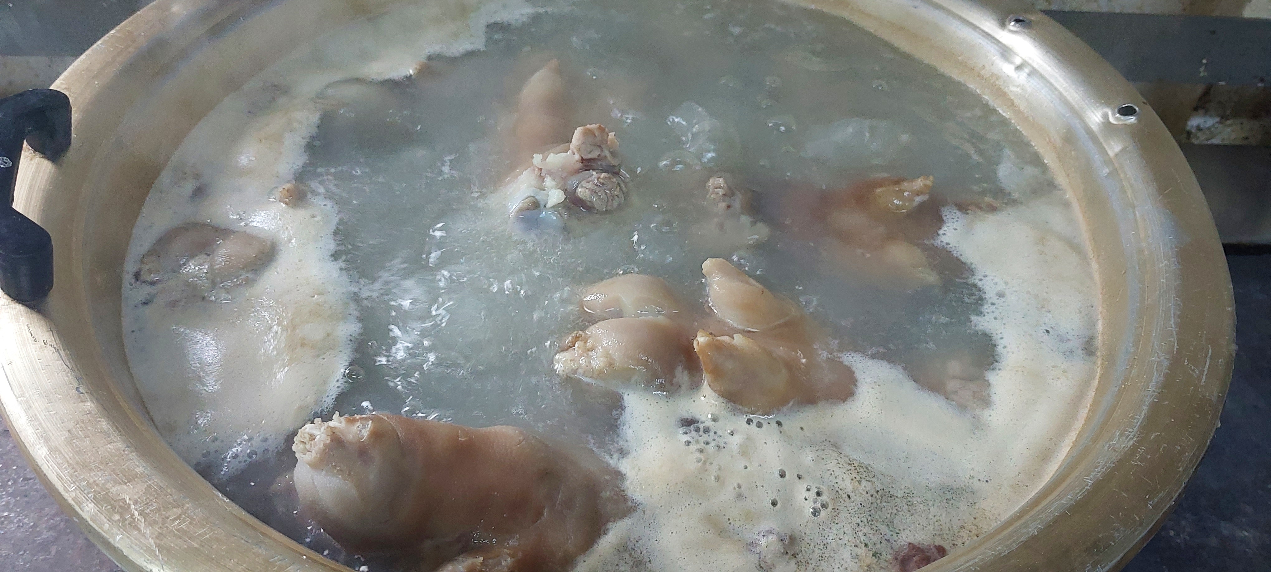 2시간 지나면 족발이 삶아지면서 불기 시작한다. 약불로 줄이면서 불조절을 하고