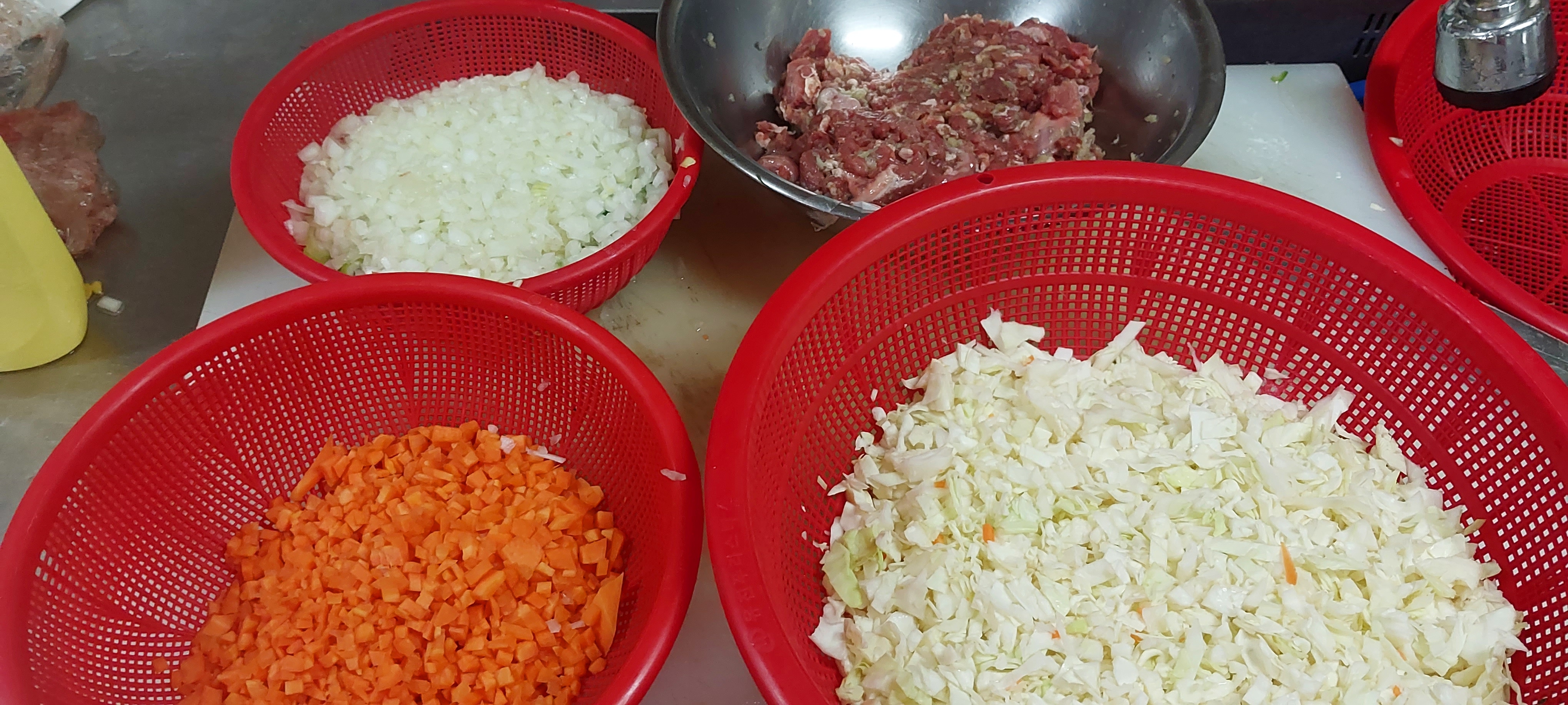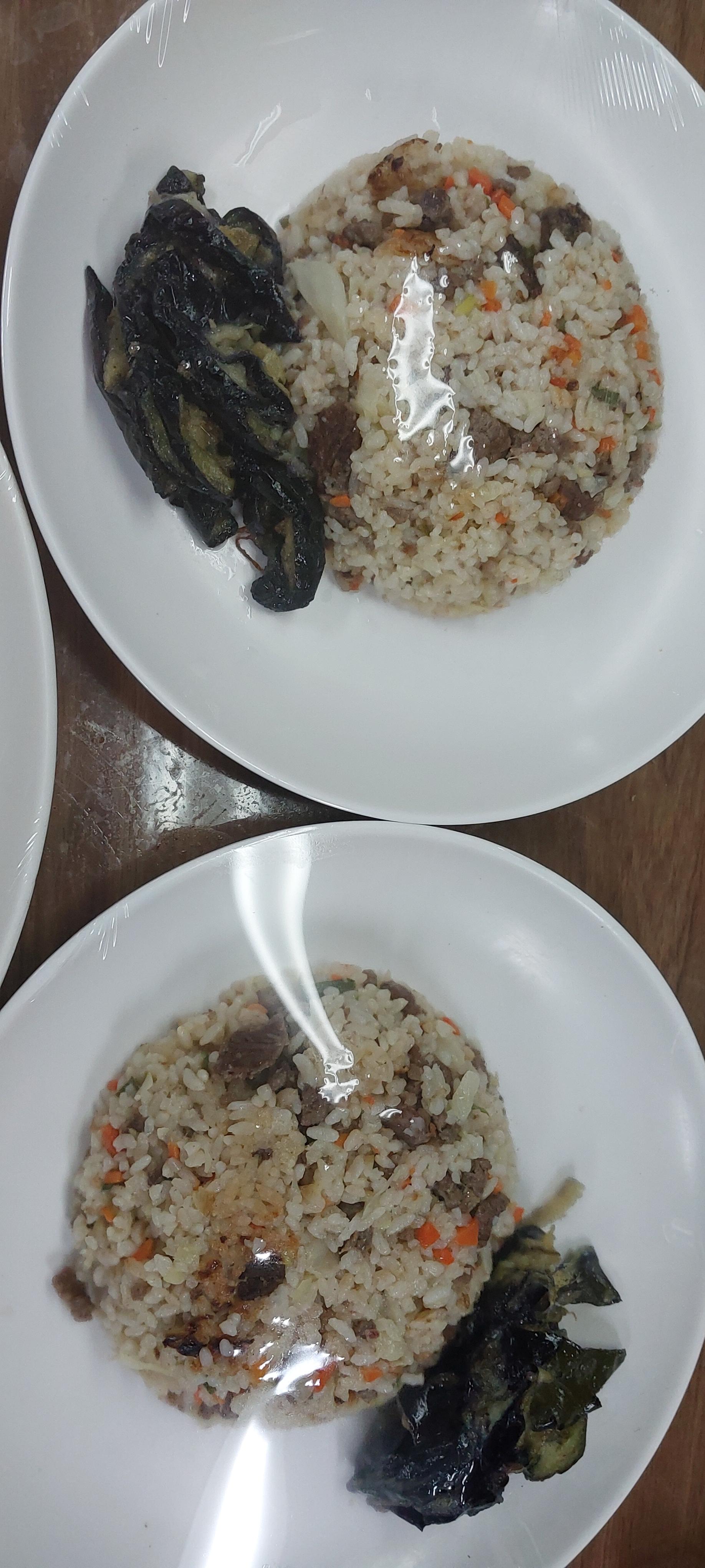 남아있던 밥 양배추 당근 양파 소고기를 썰어 넣다.