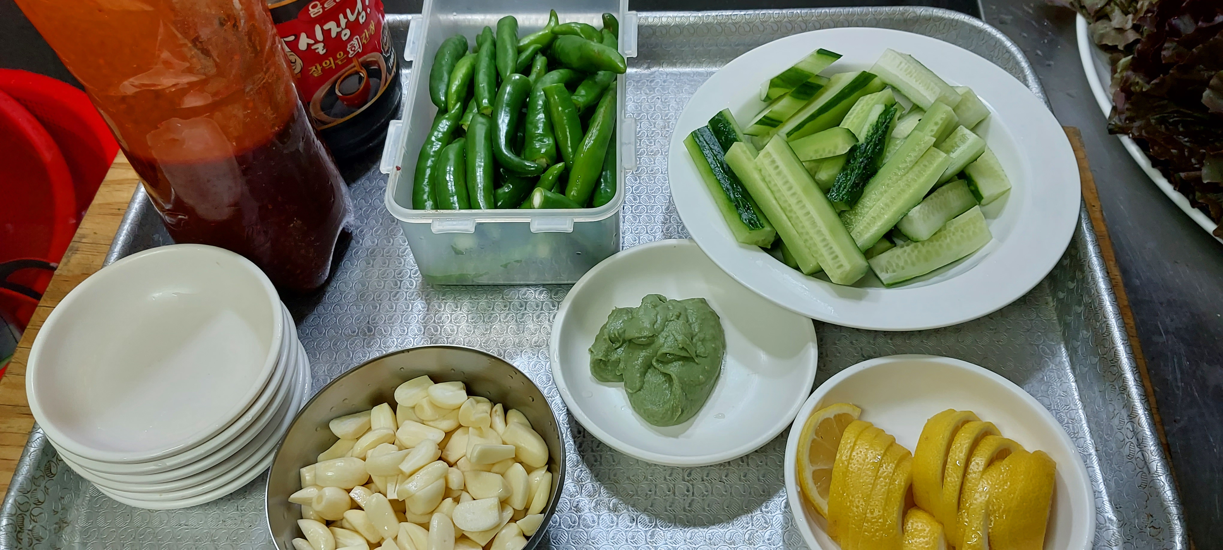 초장 와사비 간장 회를 찍어먹을 양념도 준비한다.