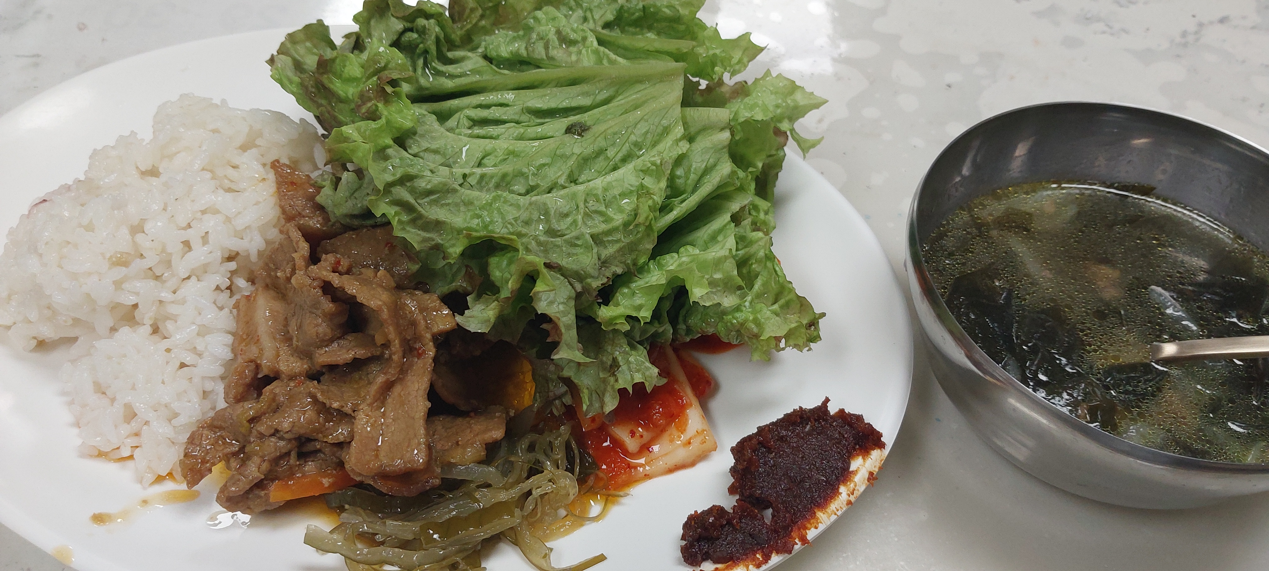 이렇게 접시에 덜어와서 상추쌈으로 먹었다.