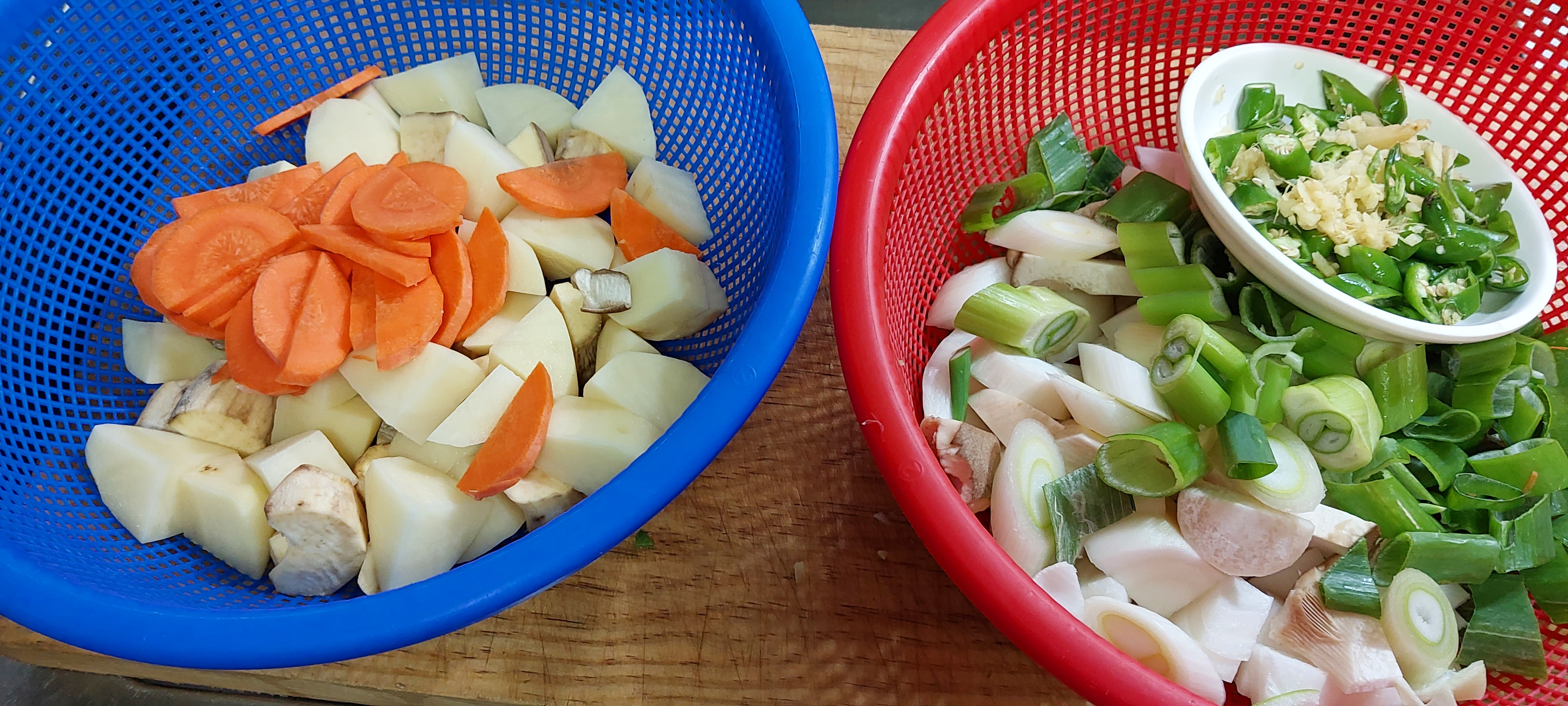 처음에 마늘 고추를 버터로 볶다가 🥔 감자 고구마 🍠 당근 🥕 등