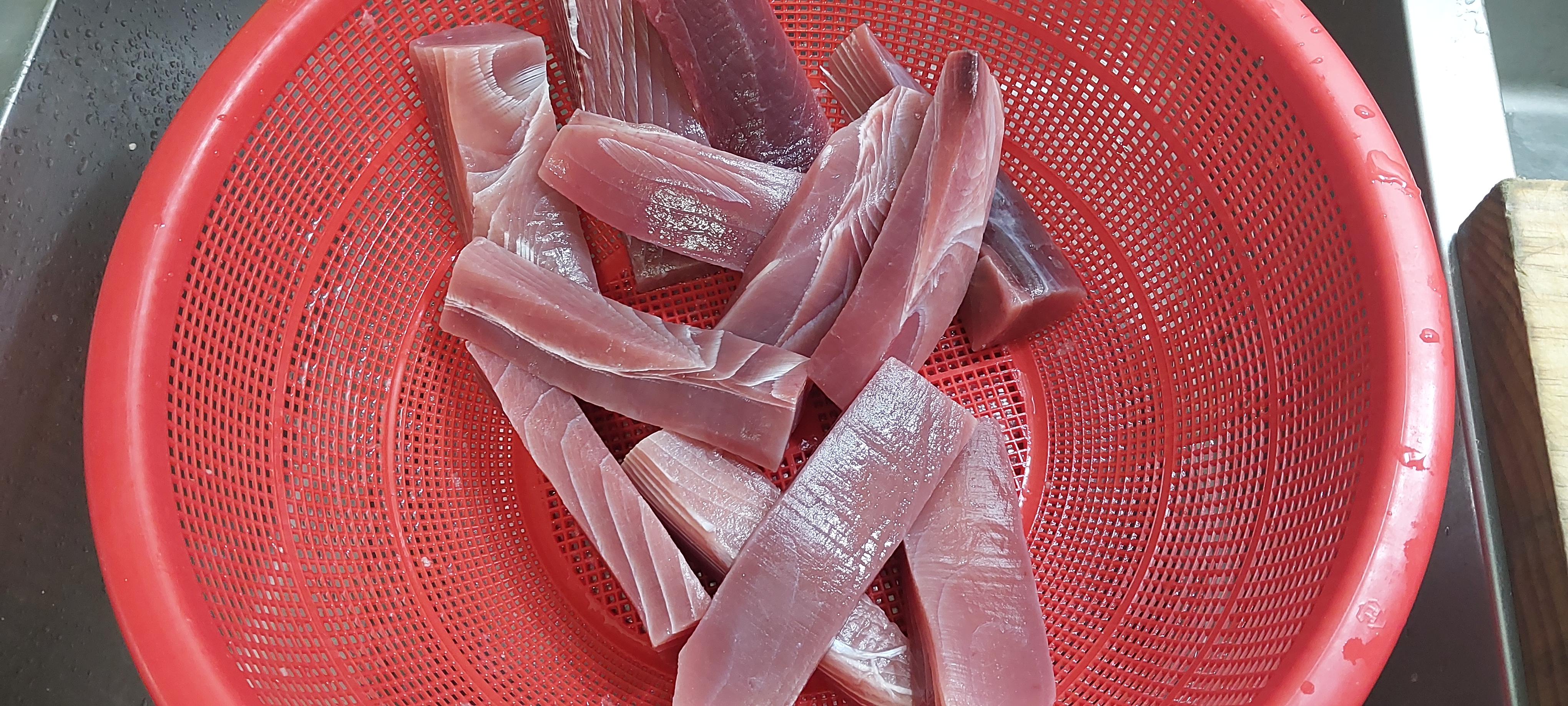 1kg 35100원다. 마구로 초밥으로 만들면 비싼건 한 피스에 만원한다.
