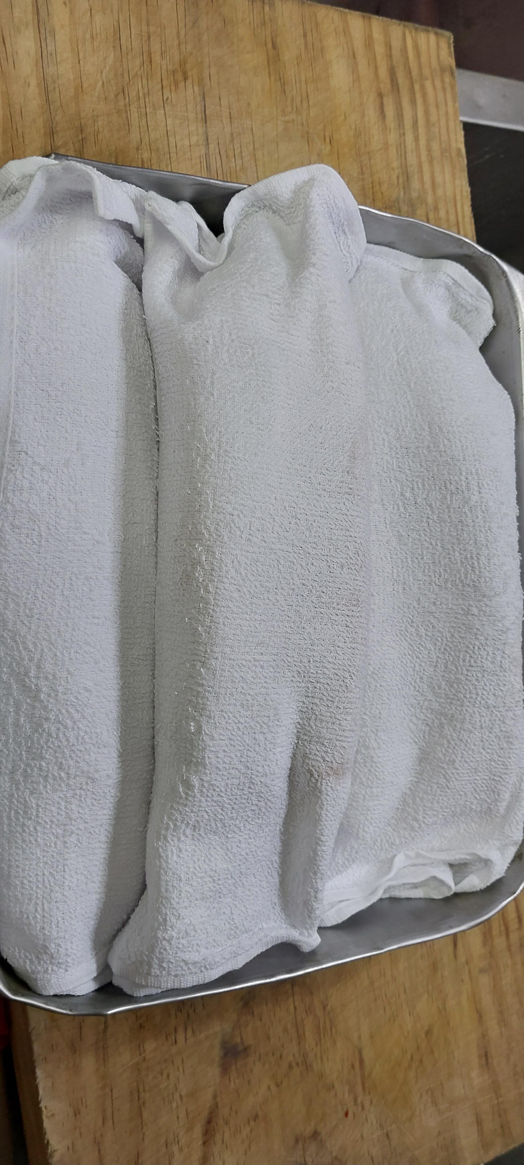 탄력을 주고 보관을 위해 흰천으로 감아 냉장실에서 2시간 넣어둔다.