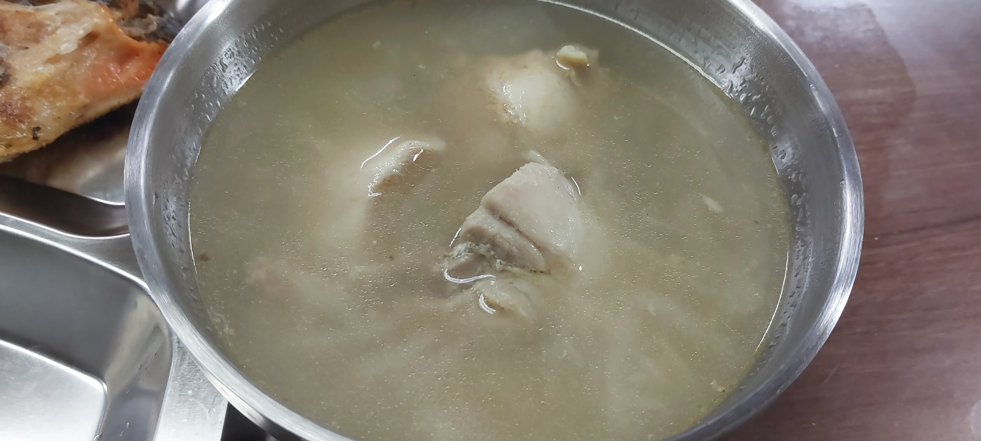 양파 마늘 넣고 소금 후추 간에 고체로 된 닭고기 육수와 인도네시아 선원이 준 수프로 맛을 가미했다.